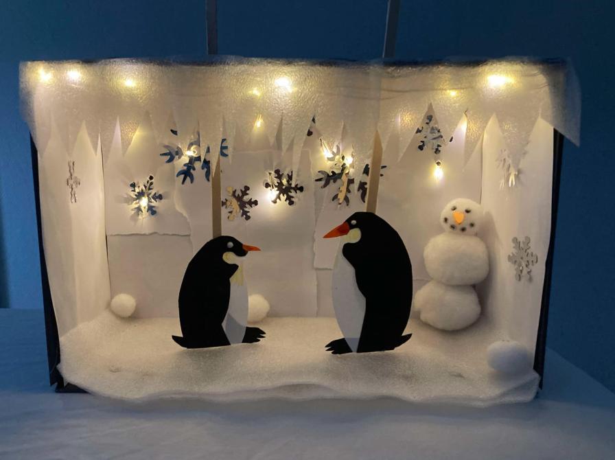 Gladsaxe HovedbibliotekByg dit eget dukketeater med lys i ud af skotøjsæsker. Temaet er vinter, så I kan for eksempel lave et smukt islandskab med pingviner og isbjørne.